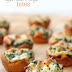 - Scoop one teaspoon of your spinach mixture on top of each crescent square and gently push in, (bites will mold to your tin while baking). Spread the remaining mozzarella cheese over the tops of each cup.
